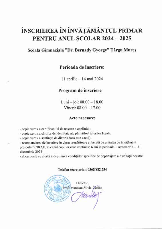 INSCRIEREA IN INVATAMANTUL PRIMAR PENTRU ANUL SCOLAR 2024-2025Documente 30 martie 2024 30 martie 2024Facebook PinterestRedditLinkedInPrint